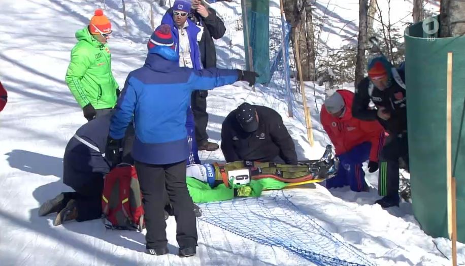 Saksalainen ampumahiihtäjä Arnd Peiffer loukkaantui perjantaina USA:n Presque Islessa maailmancupin 12,5 kilometrin takaa-ajon osakilpailussa.