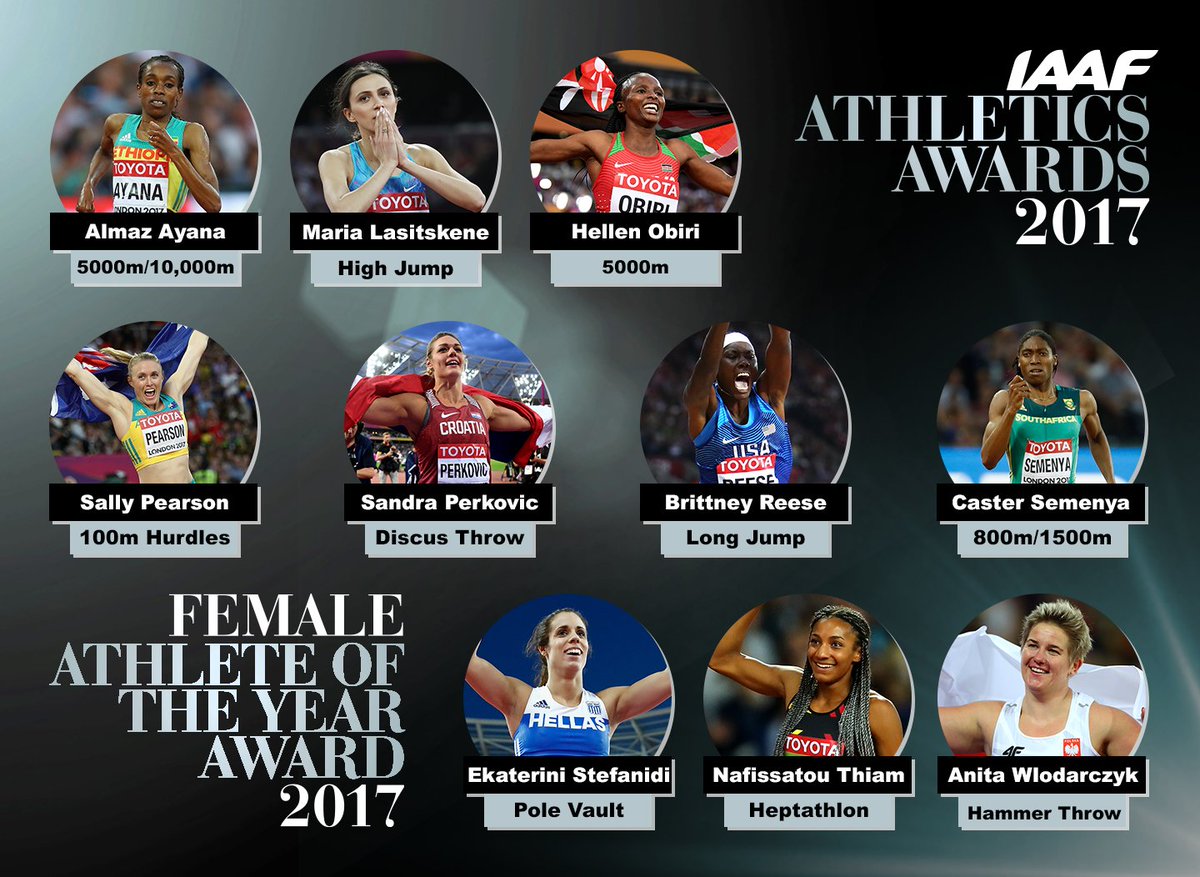 Kansainvälinen yleisurheiluliitto julkisti Vuoden yleisurheilija 2017 -palkintoehdokkaat.
