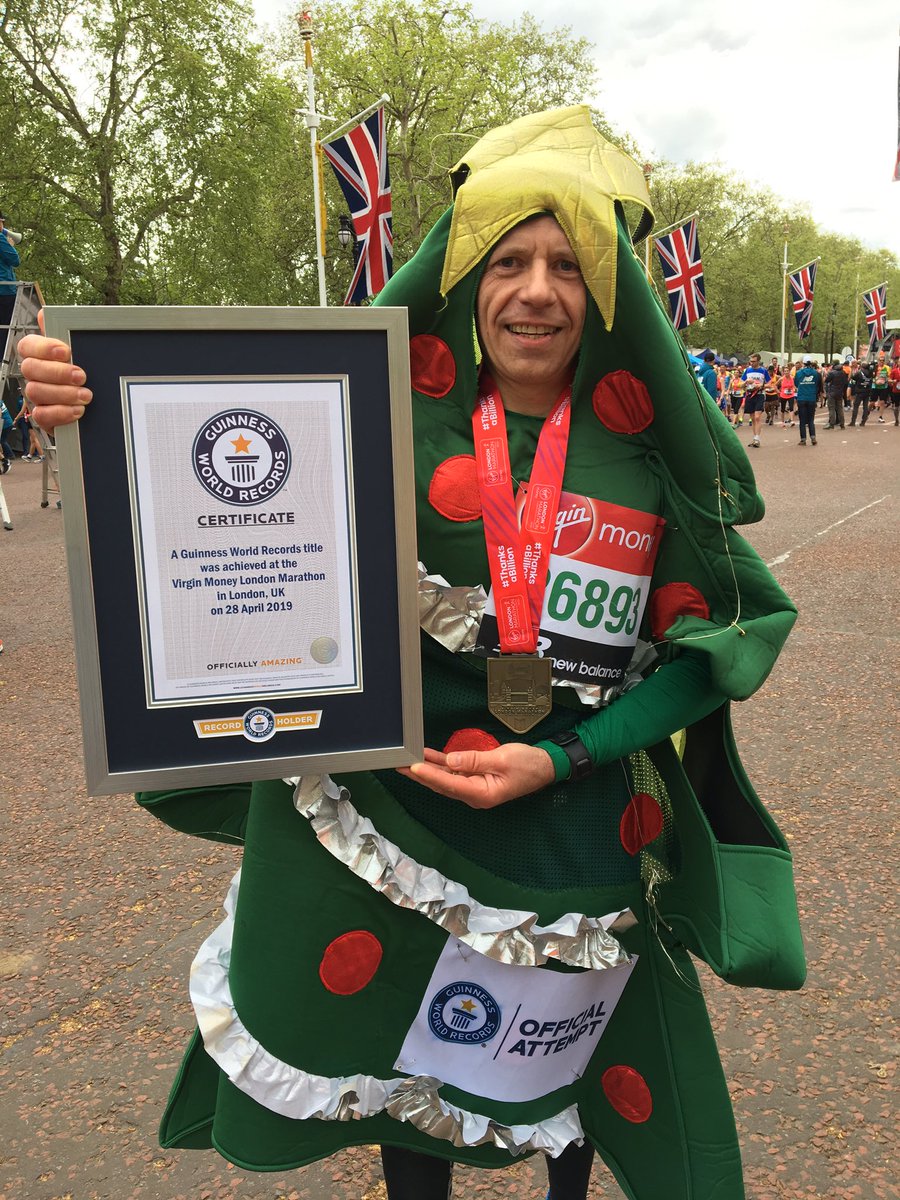 Christmas has come early this year! Laurence Mumford has secured the record title for fastest marathon dressed as a Christmas tree (male) with a time of 3:43:41. Time for some Christmas pud?