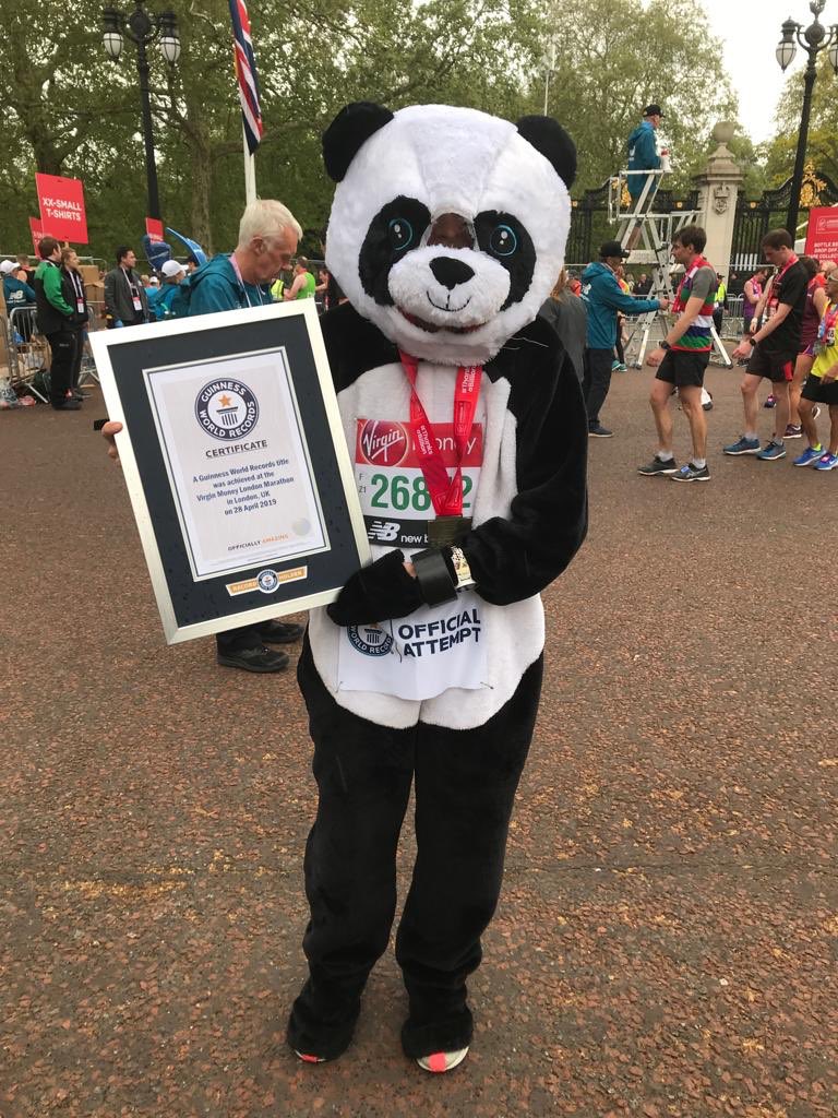 Congratulations to @katehelencarter who’s achieved the record for the fastest marathon in a full body animal costume (female) with a time of 3:48:32. The @runningchannel presenter is raising money for @WWF