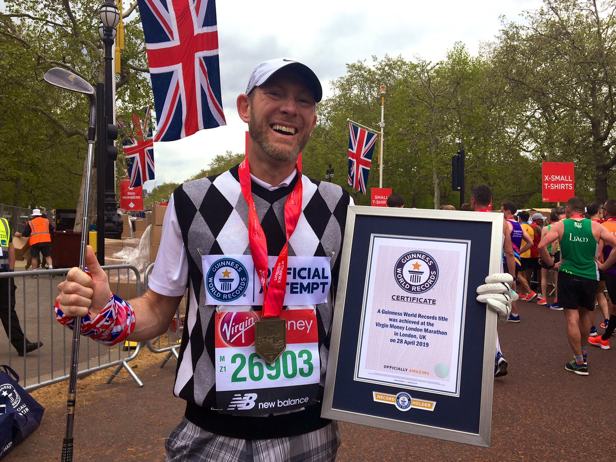 A moment he won’t fore-get - Jonni Suckling has achieved the record for the fastest marathon dressed as a golfer (male) with a time of 02:59:35.