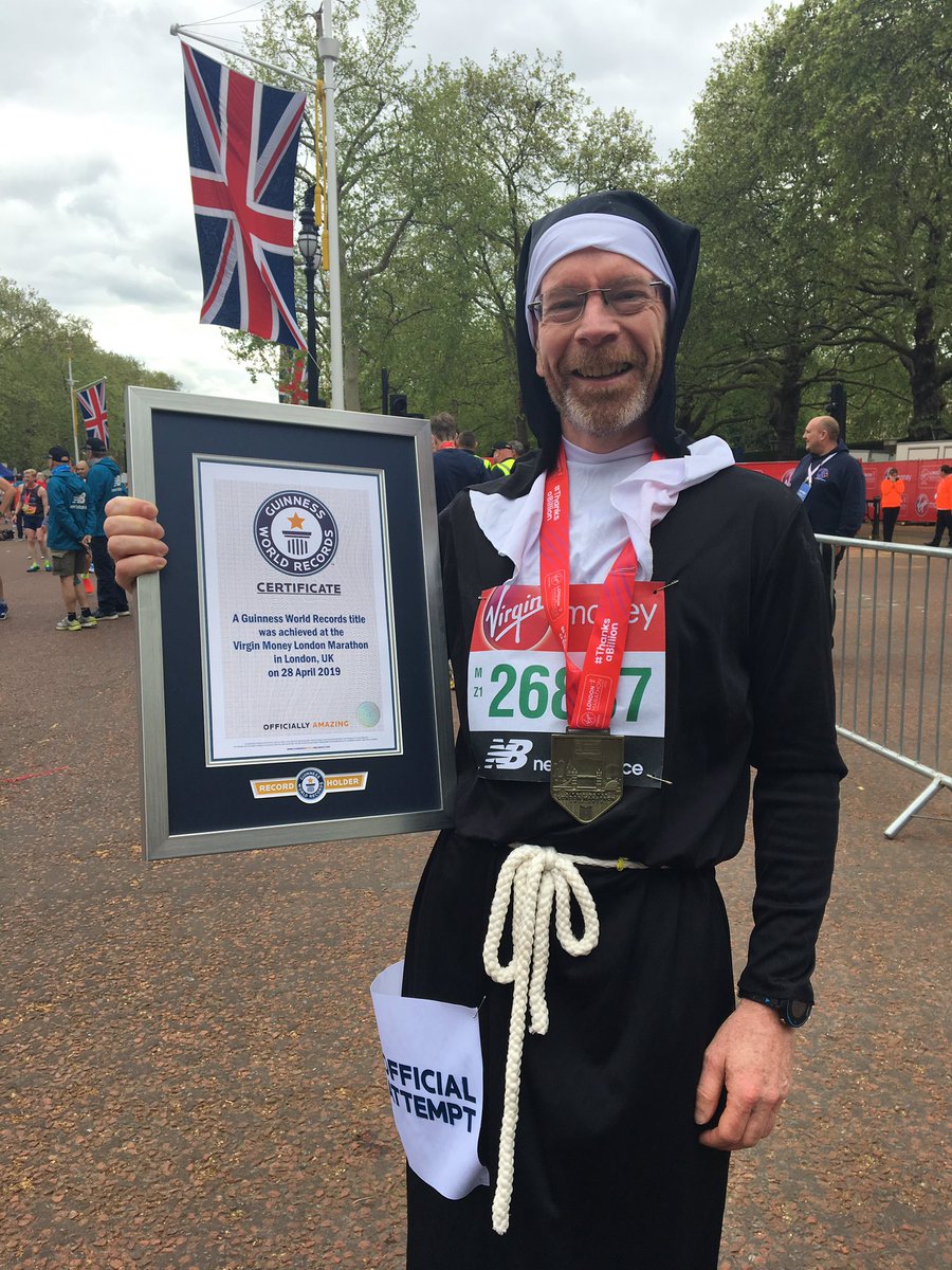 This nun sure can run! Paul Nelis has achieved the record for the fastest marathon dressed as a nun (male) with a time of 03:12:19