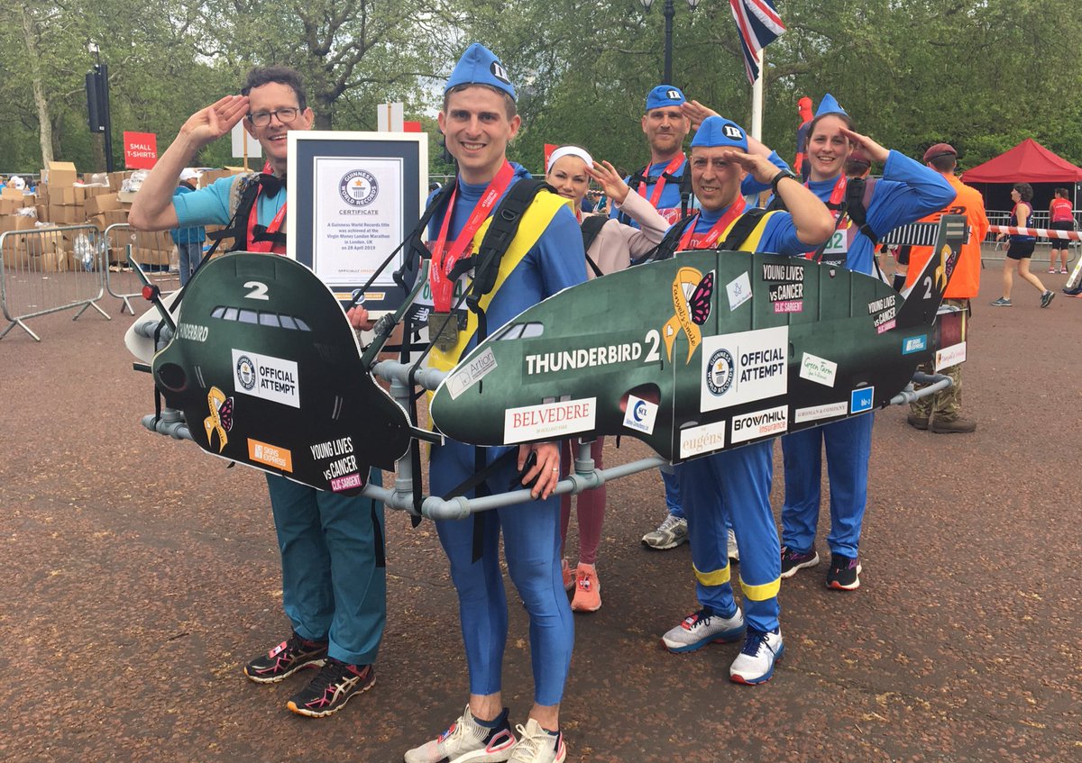 Thunderbirds are... done! These @metpoliceuk employees achieved the record for the fastest marathon in a six person costume in 5:59:33. Congratulations to Charlie Farge, Ceyhun Uzan, Rob Jones, Dave Brennan, Helen Smith and Andy Moulden!