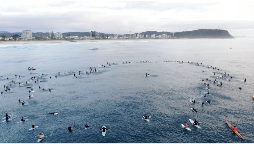 This morning, surfers paddled out to sea for Alex Chumpy Pullin. His dog sat on the beach and watched